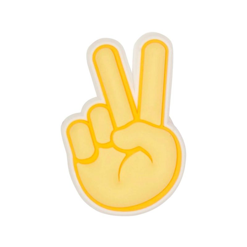 El dije para CrocsJibbitz Peace Hand Sign está hecho de materiales duraderos y de calidad. Este dije para CrocsJibbitz se puede colocar fácilmente en las Crocs.